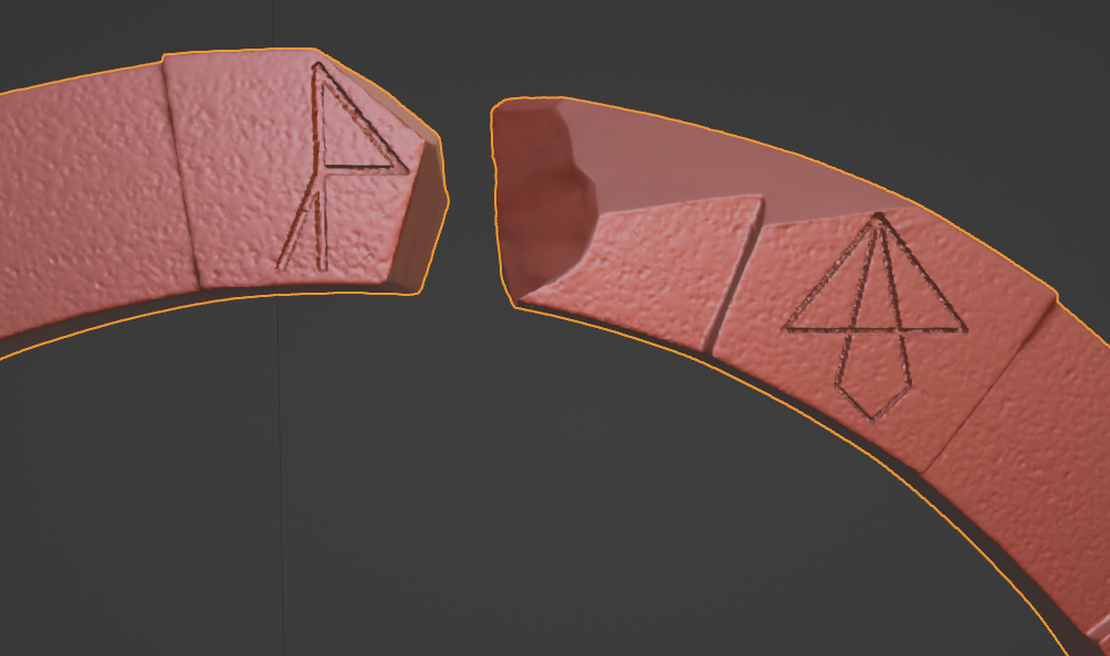 I have sculpted detail onto the stone ring portion of the device. I am going for a more weathered look on the parts of the object that are not shattered and broken.